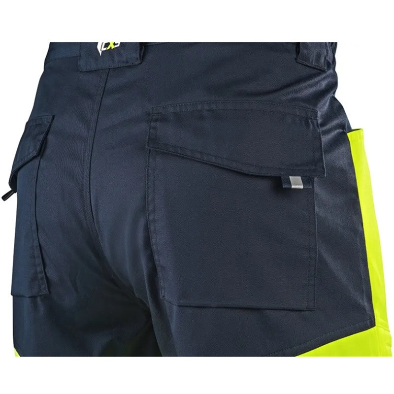 Conceput pentru activitati profesionale desfasurate in sezonul cald, unde sunt necesare vizibilitate ridicata, libertate de miscare si confort termic sporit. Modelul este realizat din material usor cu tesatura twill si este prevazut cu benzi reflectorizante segmentate cu latime de 8 cm, care asigura vizibilitate optima fara a compromite flexibilitatea materialului. Pantalonul cu pieptar este echipat cu bretele reglabile, cu elastic in partea din spate, pentru o fixare ergonomica si confortabila. Talia include gaici pentru curea, iar inchiderea laterala se realizeaza cu nasturi, completata de fermoar ascuns.