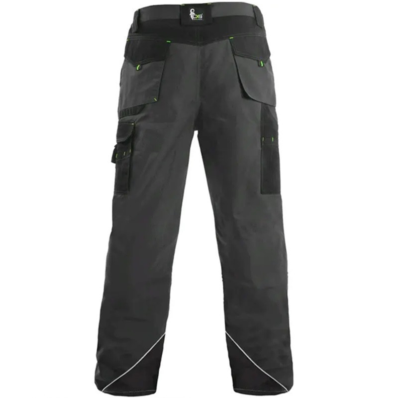 Modelul include buzunare frontale si buzunare multifunctionale amplasate pe ambele parti, optimizate pentru transportul eficient al accesoriilor de lucru. Genunchii sunt ranforsati cu poliester 600D si prevazuti cu deschidere pentru genunchiere, oferind protectie sporita si durabilitate in zonele expuse la frecare intensa. Doua buzunare la spate, ambele cu clapeta, permit depozitarea in siguranta a obiectelor esentiale. Elementele reflectorizante amplasate strategic cresc vizibilitatea in conditii de luminozitate redusa.