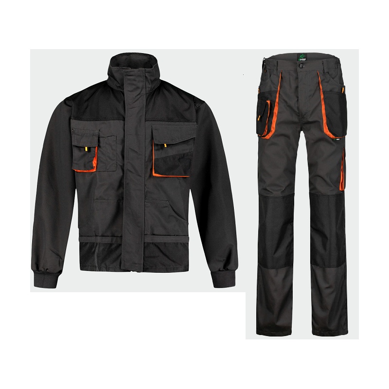 Costum salopeta clasica, 80% poliester & 20% bumbac, 270 g/mp, gri inchis & negru & portocaliu, unisex