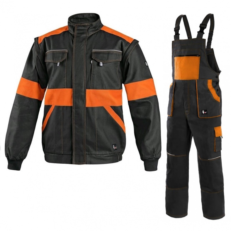 Pantaloni de lucru barbati cu pieptar, buzunar cu fermoar, talie cu banda elastica in spate, buzunare frontale, buzunar lateral pentru banda/masura pliabila, buzunar lateral pentru telefon mobil/portofel, genunchi dublu, buzunar cu clapa la spate, bretele elastice in spate, accesorii reflectorizante. Aplicatie recomandata: constructii, industria usoara, logistica, depozit, service auto, intretinere, montaj, agricultura, gradinarit, hobby.