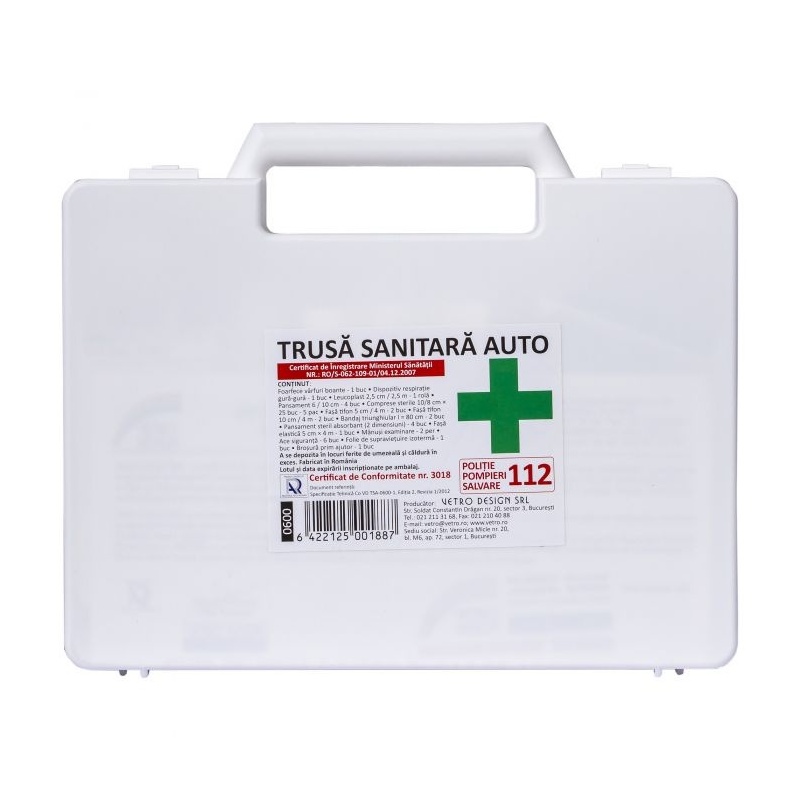 Se utilizeaza pentru acordarea primului ajutor in cazul unor accidente rutiere usoare. A nu se lasa la indemana copiilor!